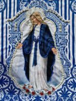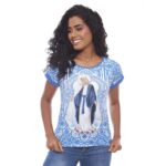 Blusa de la Virgen de la Medalla Milagrosa en tejido muy cómodo y de excelente ajuste al cuerpo en color azul. Pieza única y especial con magníficos bordados resaltando la imagen de la pura y siempre Virgen María. Pieza bordada de la Virgen de la Medalla Milagrosa para aquellos que aman a María y desean llevar esta devoción a donde quiera que vayan.