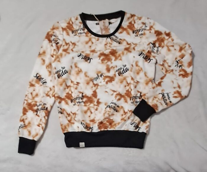 Buzo de dama sencillo cuello redondo, mensajes positivos, cuello, puños , pretina color negro.