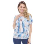 Camiseta Femenina Tipo T-Shirt con rosas Virgen de la Medalla Milagrosa