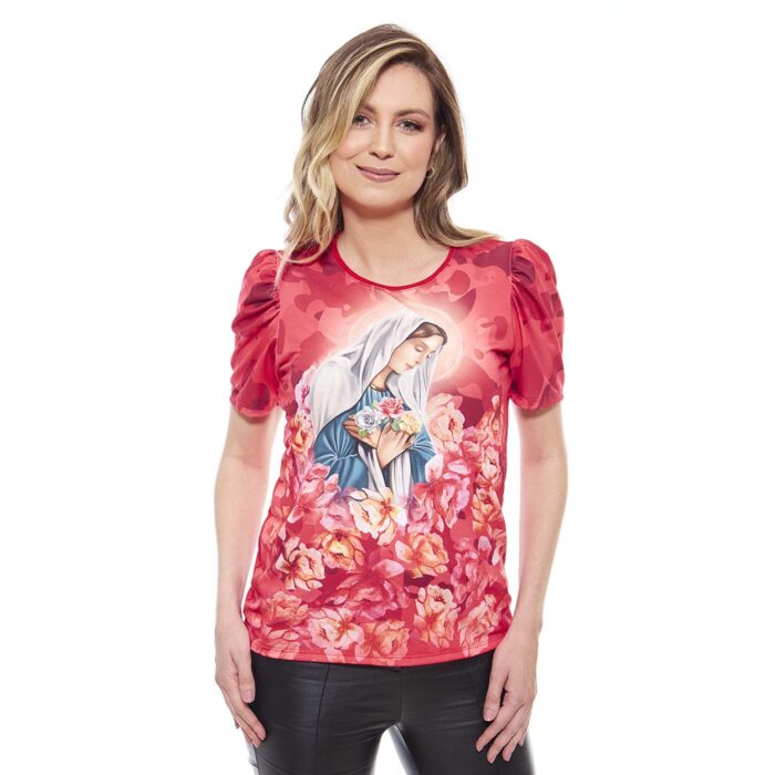 Camiseta Femenina Tipo T-Shirt de la Virgen de la Rosa Mística