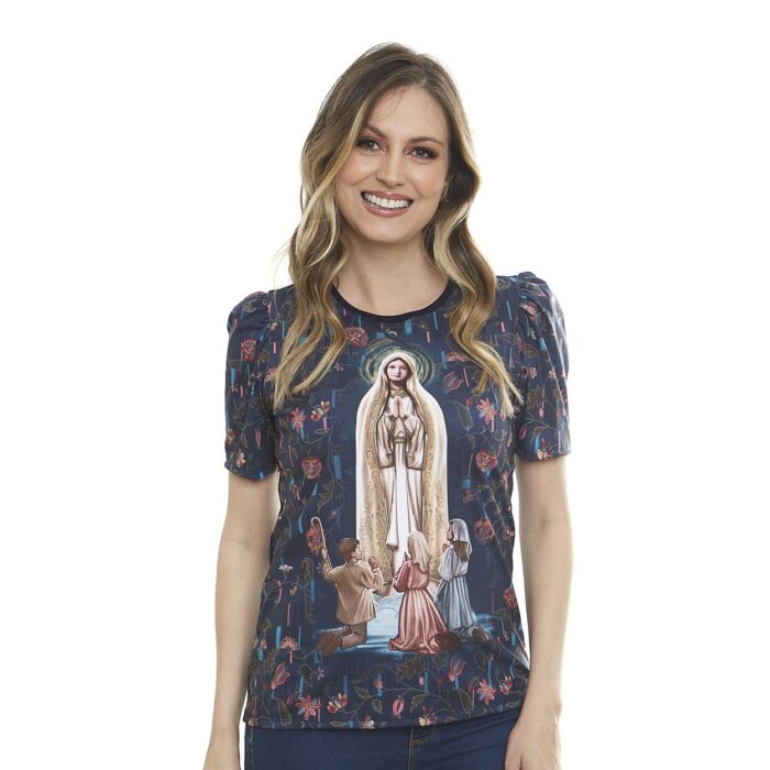 Camiseta Femenina Tipo T-Shirt manga princesa de Nuestra Señora de Fátima