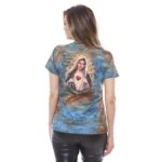 Camiseta femenina ajustada tipo T-Shirt del Inmaculado Corazón de María y el Sagrado Corazón de Jesús en tejido de polielastano con unos detalles únicos que realzan aún más esta hermosa devoción.