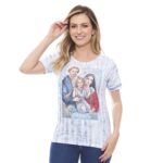 Camiseta femenina tipo T-Shirt ajustada de la Sagrada Familia para lucir en momentos únicos, llevando siempre al hogar y al corazón las enseñanzas y virtudes de la Familia de Nazaret. Confeccionado con un suave y cómodo tejido blanco.