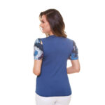 Camiseta femenina tipo T-shirt de la Virgen del Rosario. El modelado y el corte le dan a la prenda un ajuste perfecto al cuerpo. En azul, discreto y elegante, es ideal para usar en las más diversas ocasiones, incluidas las fiestas y queda bien en todo tipo de cuerpo. Especialmente por su imagen, esta es una pieza muy querida por todos aquellos que confían en la intercesión de la Virgen María y saben que por ella todas las peticiones llegan al corazón de Jesús.