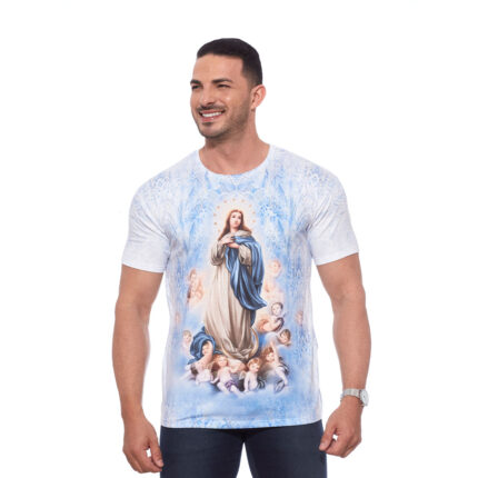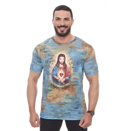 Camiseta con un hermoso diseño de rayas e imagen de la Medalla de San Benito en el centro en color azul con rayas blancas. Con modelado y corte que dan un ajuste perfecto al cuerpo. Camiseta Medalla San Benito perfecta para hacer varias combinaciones y vestir a toda la familia con mucho amor.
