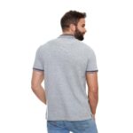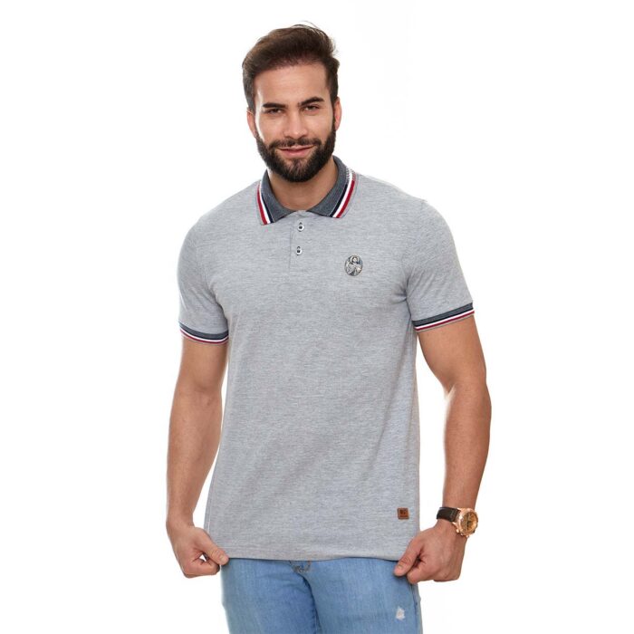 Camisa de hombre cuello polo en piqué, con aplicación de seda con relieve de la imagen de Jesús Misericordioso, en mezcla gris medio, en tejido cómodo y perfecto modelado. Camisa cuello polo con diseño de Jesús Misericordioso, para llevar a cualquier lugar con elegancia para componer combinaciones casuales.