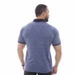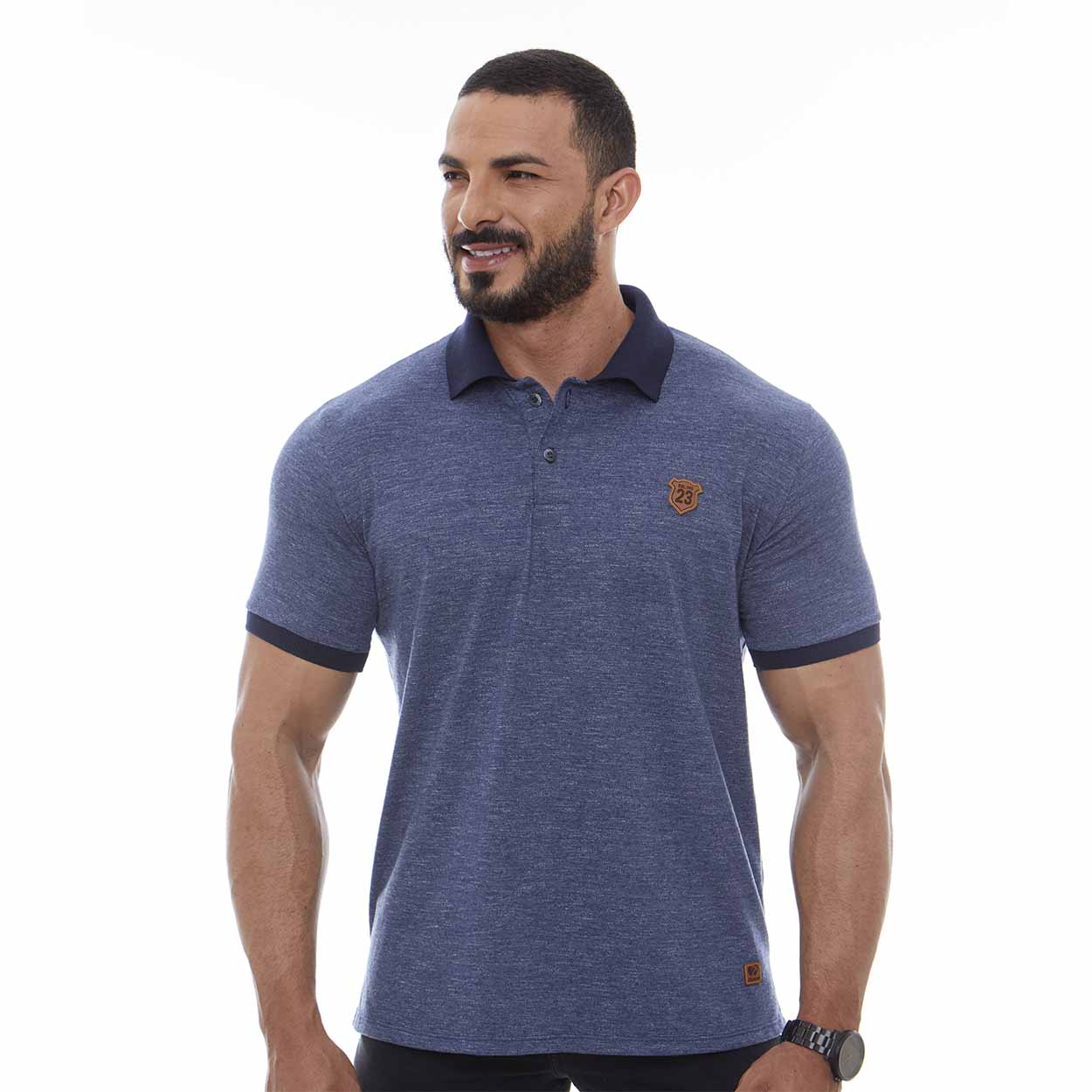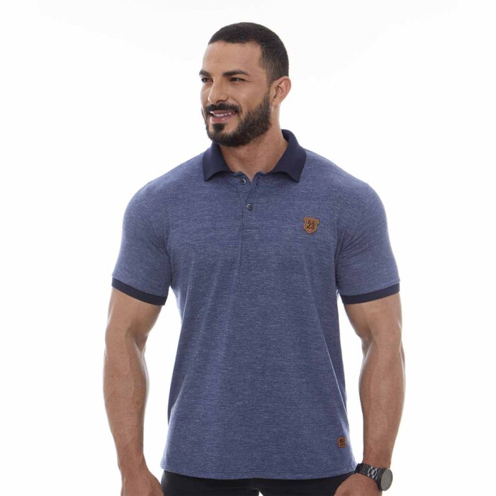 Camisa de hombre del Salmo 23 con cuello polo. Tiene una aplicación sofisticada en piel láser en color azul marino en malla moulline para llevar en cualquier ocasión, ya sea en momentos familiares o grandes solemnidades. Esta polo de hombre es muy elegante y discreta para hombres que confían y declaran “Jehová es mi pastor y nada me faltará”