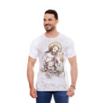 Camiseta con la imagen de San José para aquellos que deciden vivir las virtudes todos los días de su vida y confían todo en la Divina Providencia. Es una camiseta blanca en tejido de polielastano con textura suave y de alta durabilidad. Perfecto para momentos familiares, la Santa Misa y celebraciones solemnes.