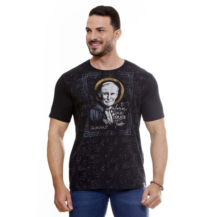 Camiseta San juan Pablo ll con detalles exclusivos para esta pieza. En color negro, muy elegante, en algodón proporcionando un bonito ajuste al cuerpo. La camiseta San Juan Pablo ll con un aplicación especial de seda Silk es una prenda muy querida por todos aquellos que son devotos y creen que la vocación del cristiano es la santidad. Camiseta San juan Pablo ll con detalles exclusivos para esta pieza. En color negro, muy elegante, en algodón proporcionando un bonito ajuste al cuerpo. La camiseta San Juan Pablo ll con un aplicación especial de Silk es una prenda muy querida por todos aquellos que son devotos y creen que la vocación del cristiano es la santidad.