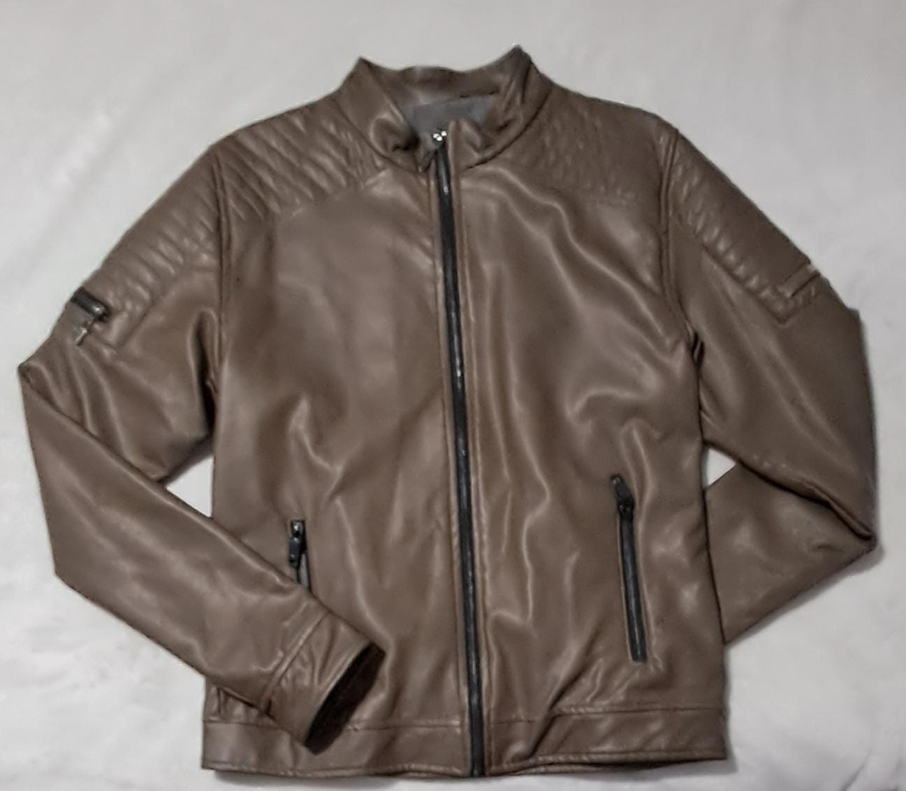 Chaqueta cuero tex cuello redondo.