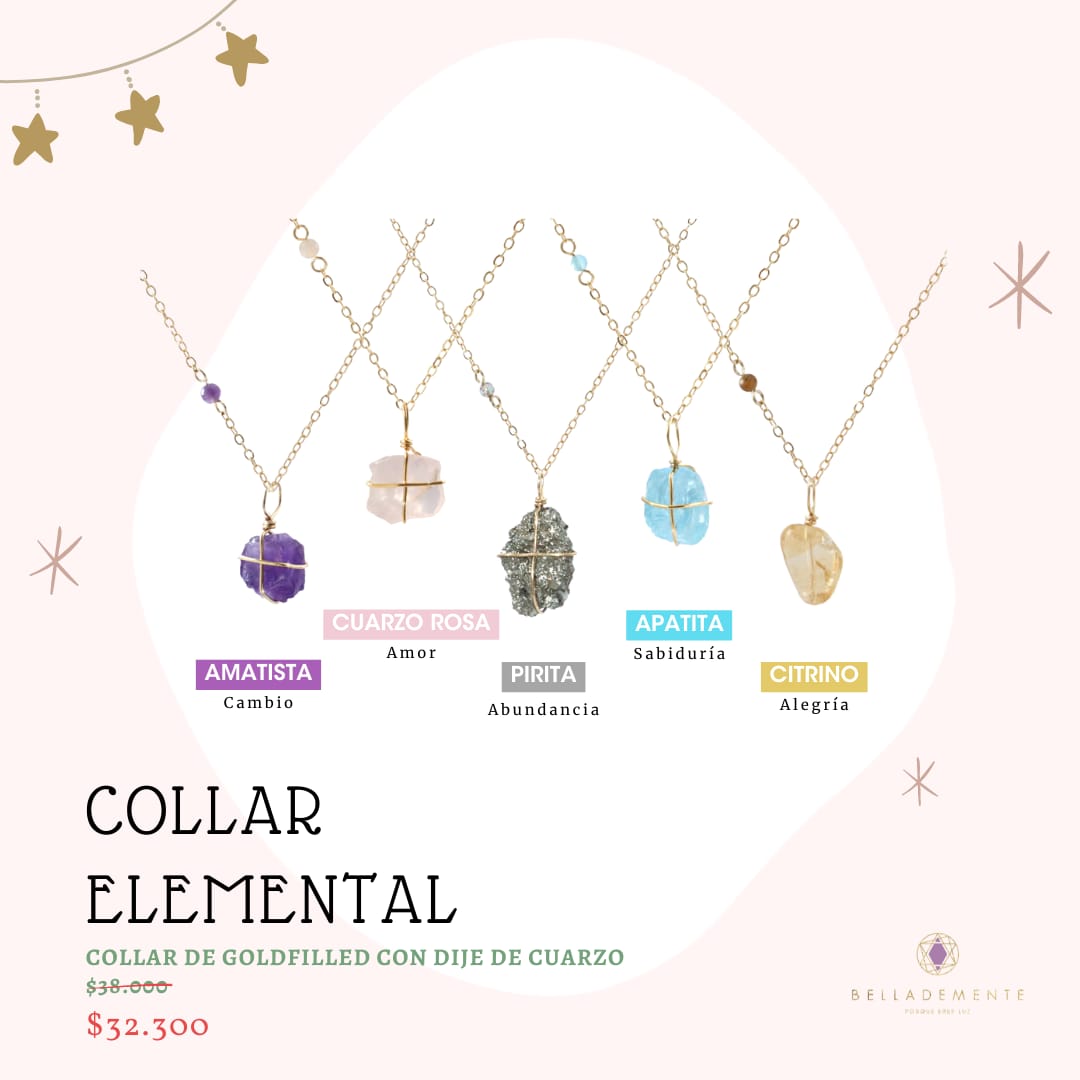 Cadena de goldfilled con piedra incrustada en un lado y dije removible de Cuarzo.