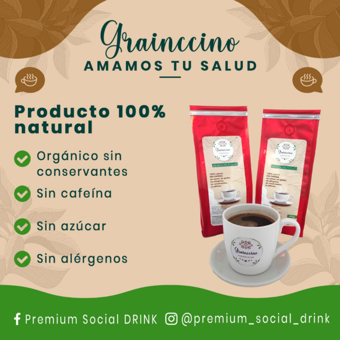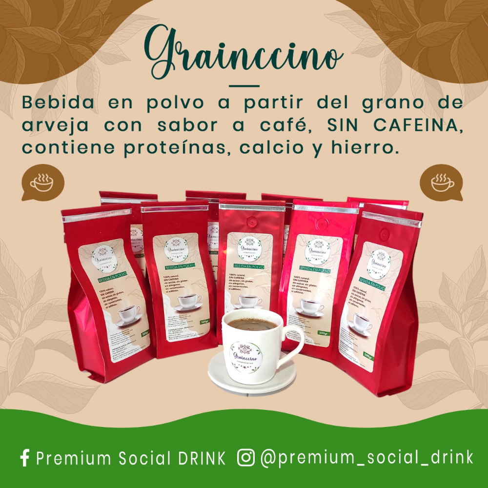 Bebida en polvo a partir del grano de arveja con sabor y aroma similar al cafe tradicional. 100% natural y orgánico, SIN CAFEINA, sin conservanes, sin azúcar, sin gluten, sin alergenos. Con Proteinas, calcio y hierro.