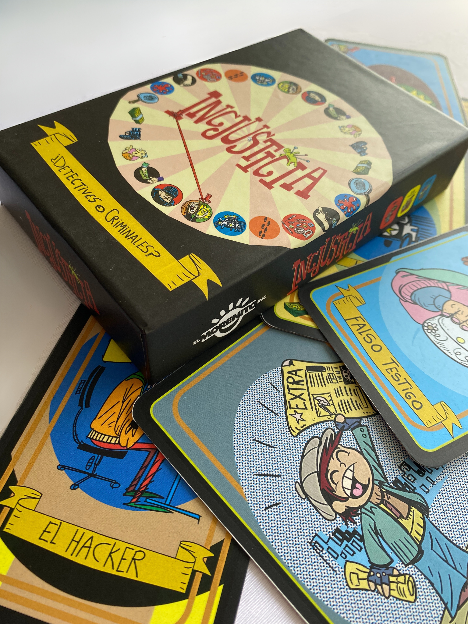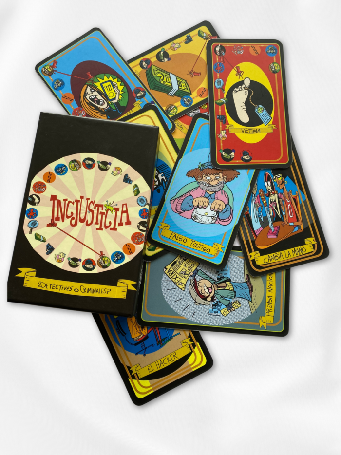 Contiene: 48 cartas de evidencias, 10 cartas especiales, 1 manual de instrucciones, 6 cartas que arman el mantel.