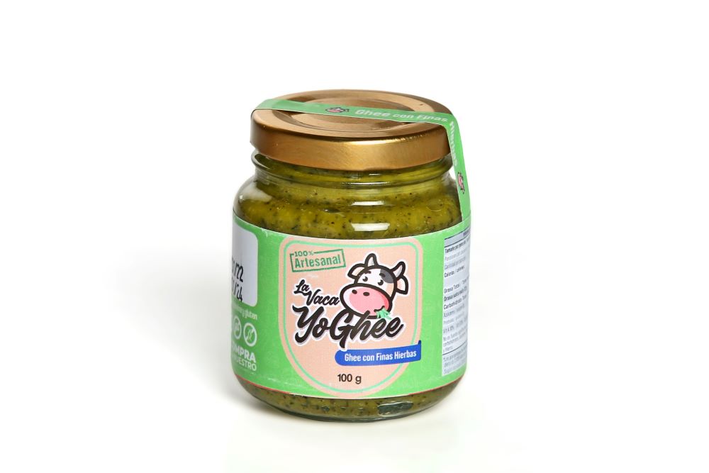 Mantequilla de vaca clarificada con Finas Hierbas y Cebolla Larga en polvo. Ideal para cocinar, adobar, untar y disfrutar en familia.