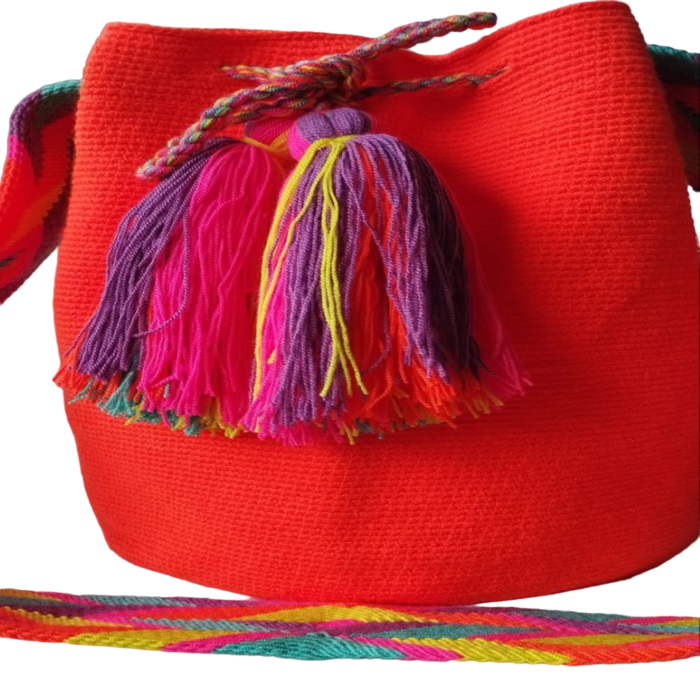 Elaborada a mano en hilo guajira, unicolor naranja assas hechas en telar en colores surtidos,