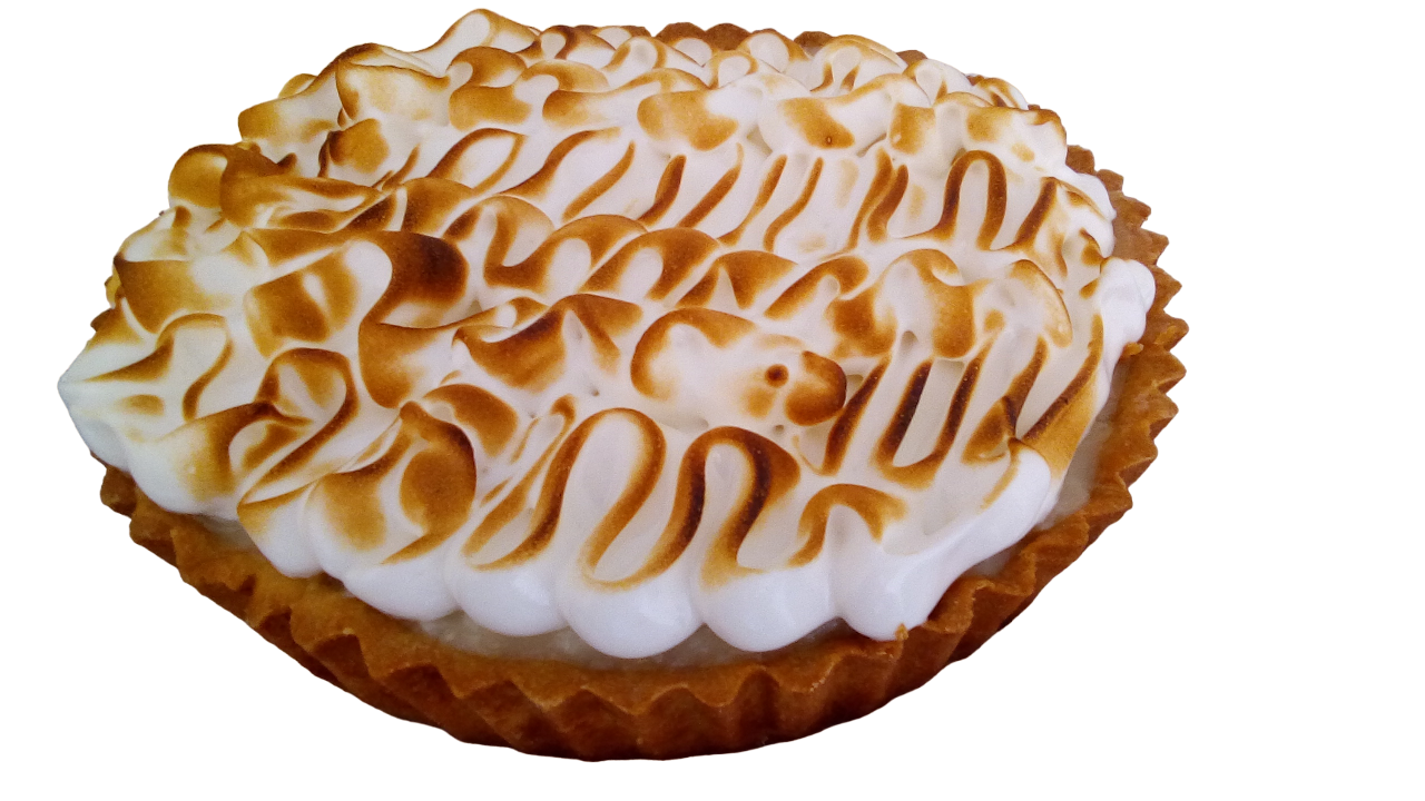 Postre de galleta crujiente, relleno decurd de limón, decorado con merengue suizo flameado.