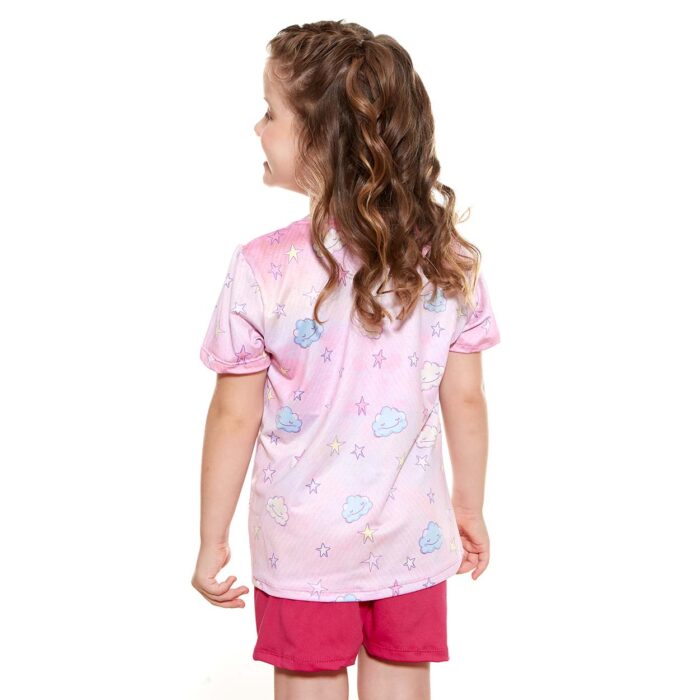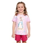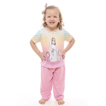 Versión especial de la pijama infantil para niñas con la imagen de la pequeña Virgen de la Medalla Milagrosa en color rosado. En tejido de microfibra acogedor y confortable para que las niñas se vistan y tengan los más bellos y delicados sueños bajo la intercesión de Nuestra Señora de la Medalla Milagrosa. Esta camiseta y pantalón corto forman el conjunto perfecto para tu pequeña.