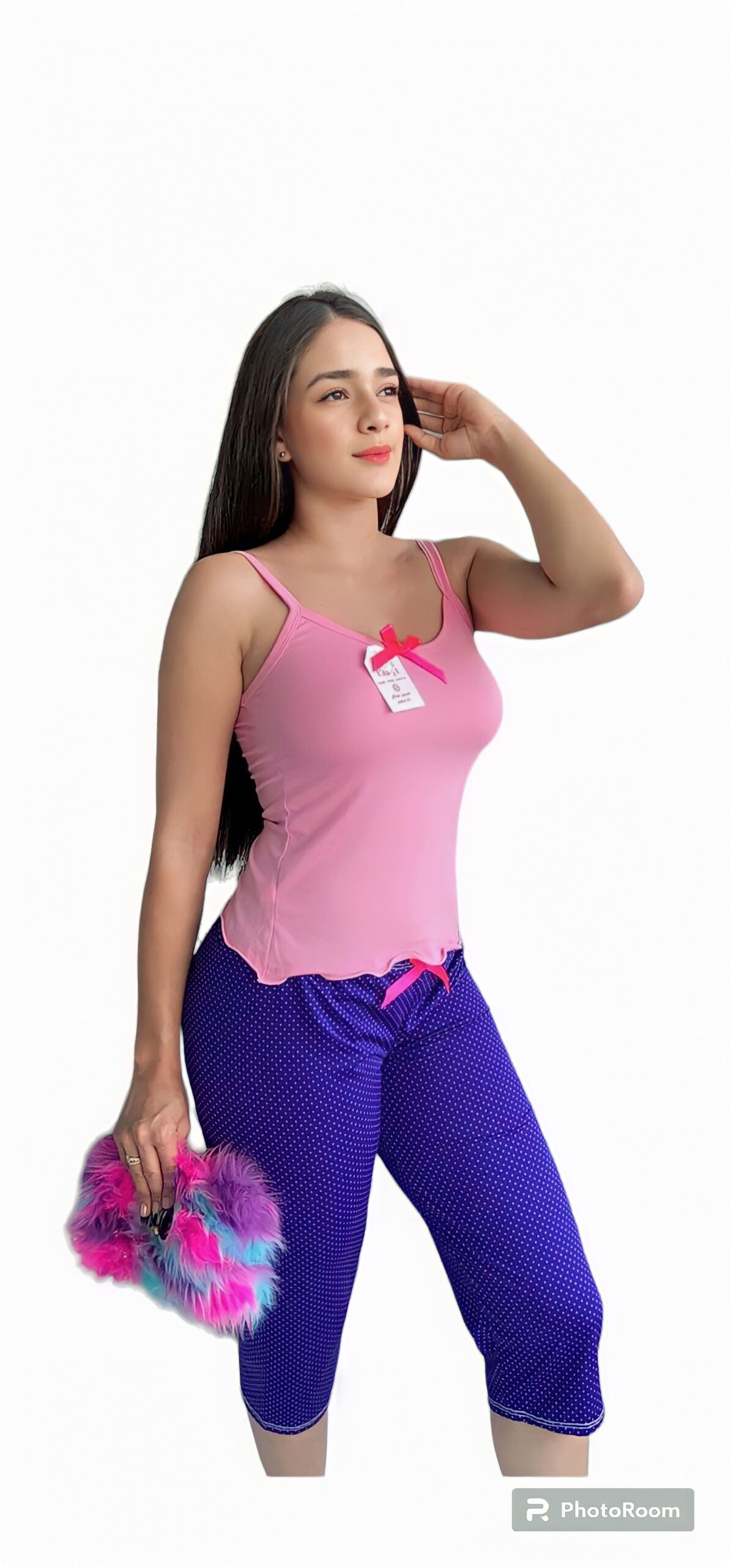 Pijama capry acetato blusa tiras en piel de durazno tallas s m l y xl.