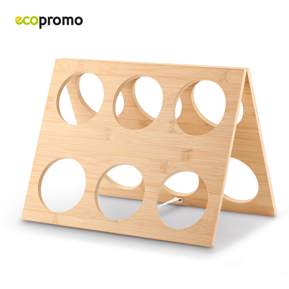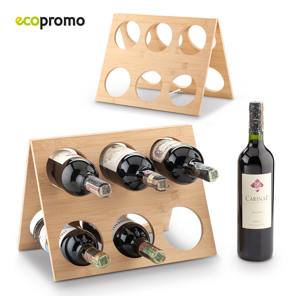 Portabotellas en madera para 6 botellas de vino de 8 cm de diámetro o menor.