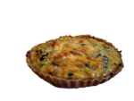 Tarta salada, gratinada, rellena de pollo, espinaca, o cebollas caramelizadas.
