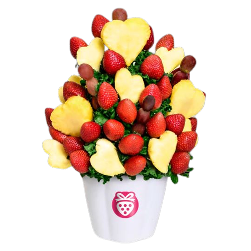 Ramo Frutal con Deliciosas Fresas Naturales, Corazones de Piña Natural, Palitos de Uvas.