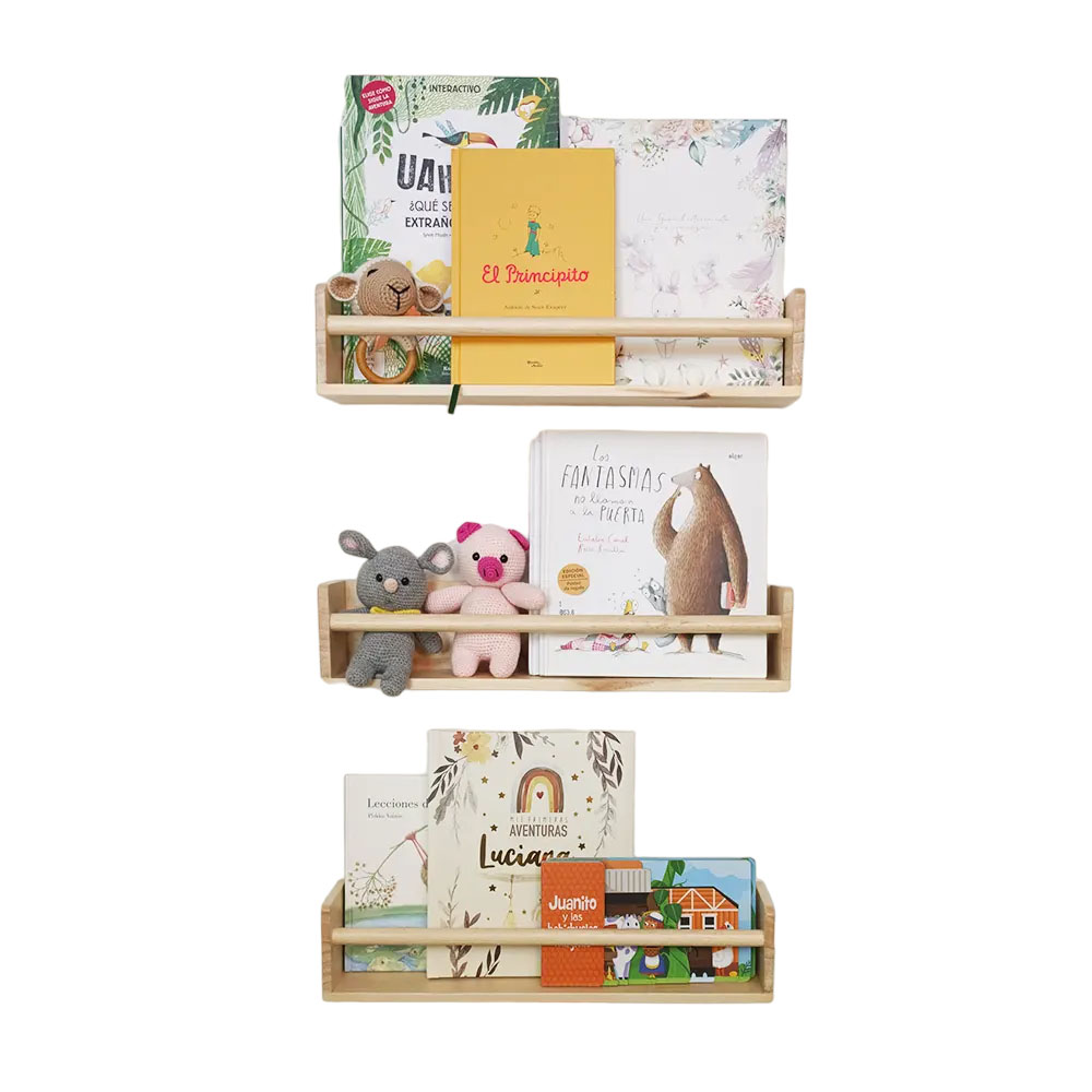 La Repisa para Libros Montessori ayuda a organizar sus cuentos, cuadernos y accesorios de forma práctica. Es importante que puedas ubicar las repisas a la altura de tus peques, esto los motivará a tomar sus libros cuando gusten, así mismo puedes enseñarles a ordenar cuando terminen de usarlos.