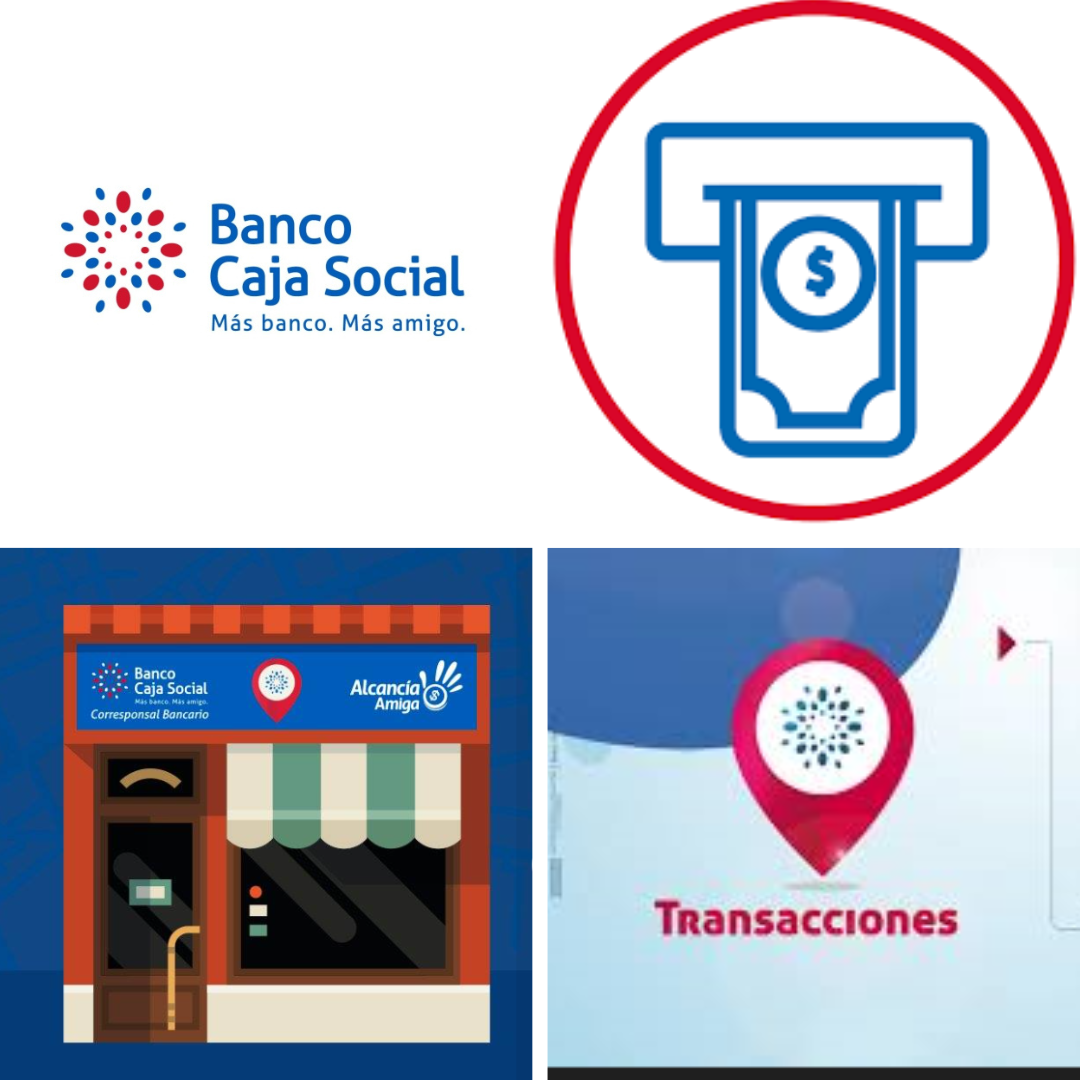 Retiros y consignaciones del banco caja social, pago de TC, créditos, convenios, facturas.