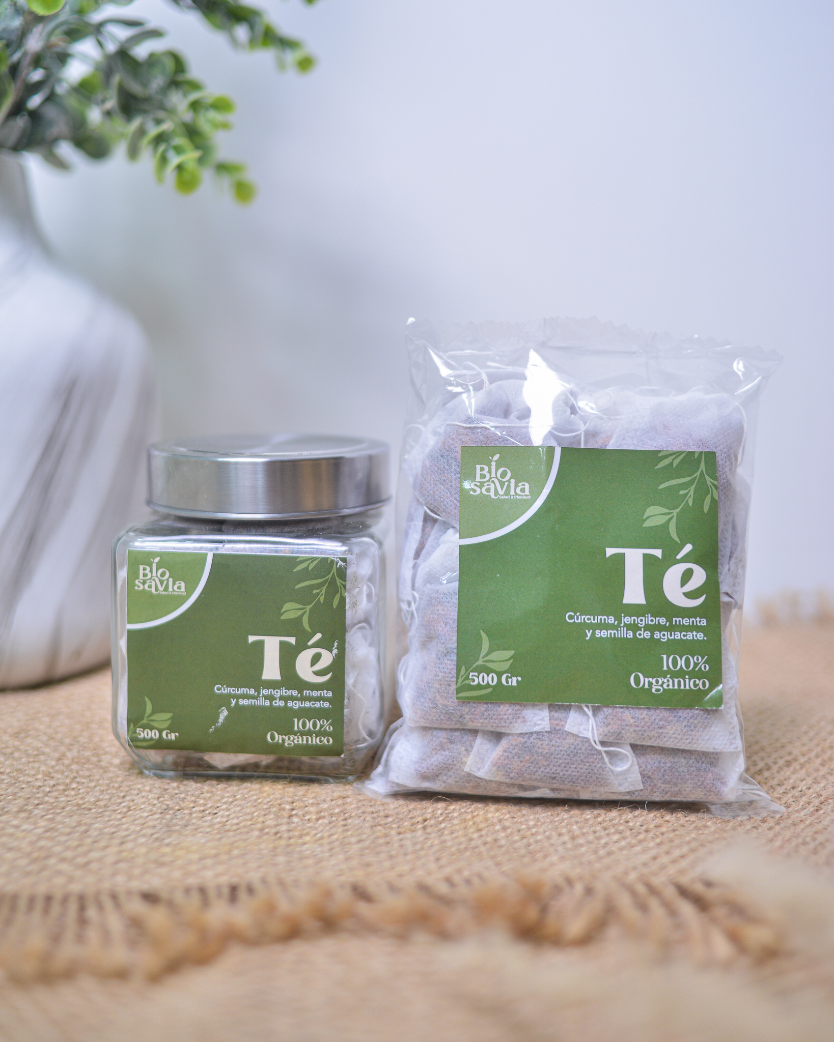 Té natural de jengibre, cúrcuma, semilla de aguacate y menta. Presentación 21 sachet.